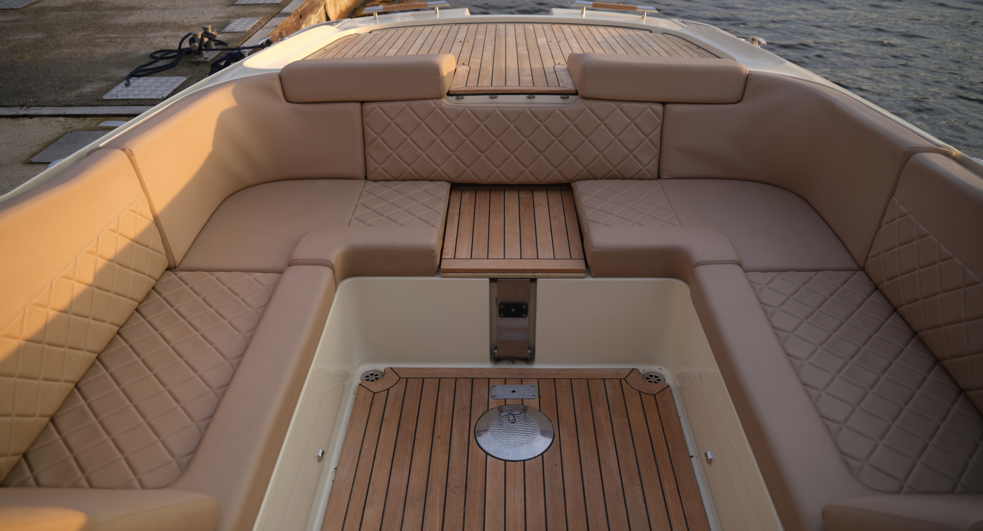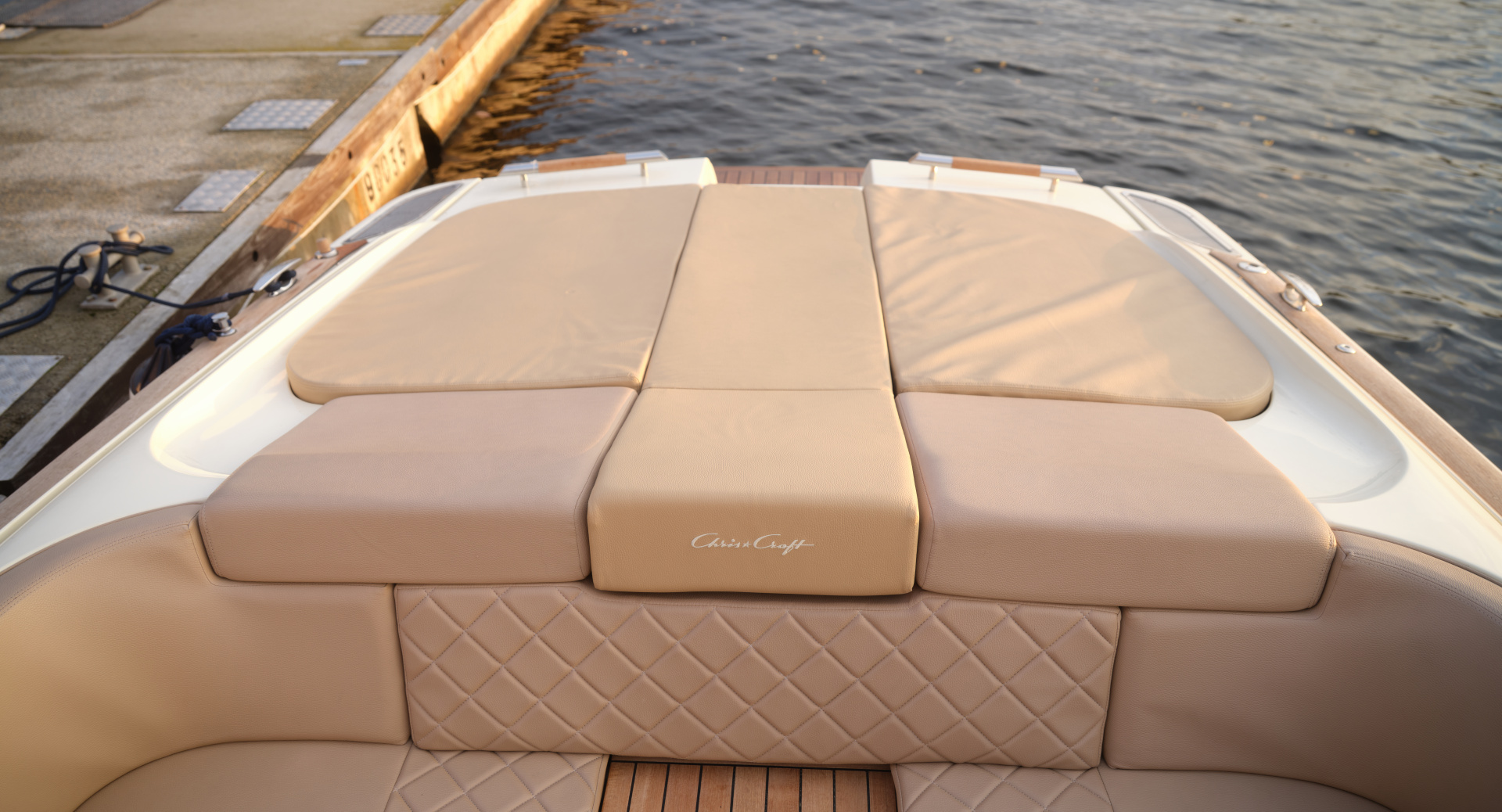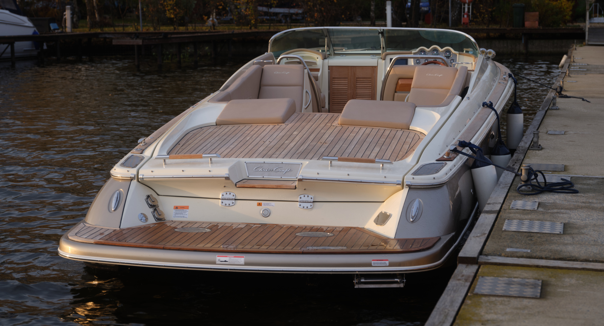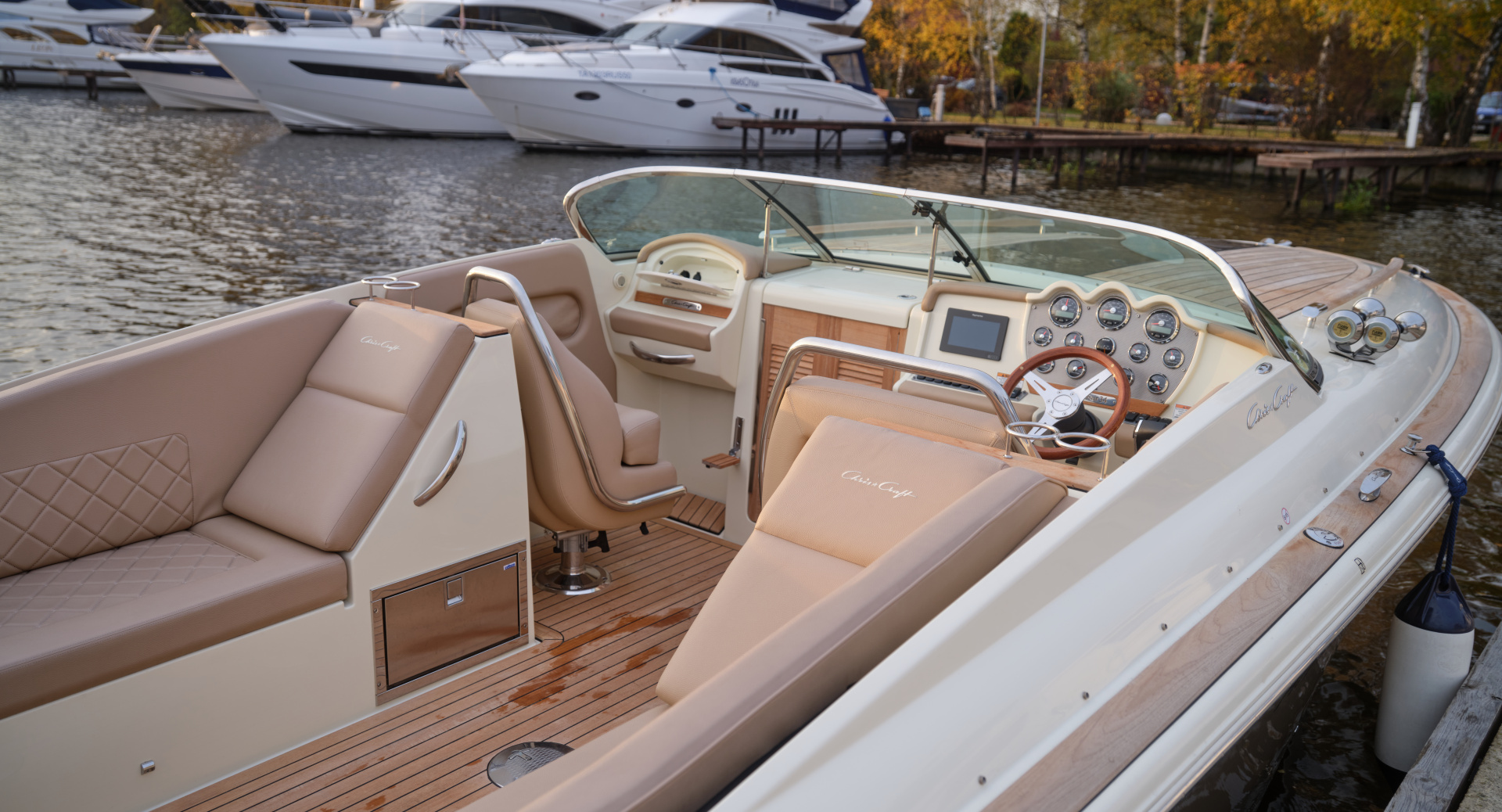 Chris-Craft Corsair 34 — это полноценная яхта, и не только благодаря общей длине, чуть превышающей 34 фута, но и благодаря великолепному комфорту на борту. Сохранив все фамильные черты внешности и компоновочные решения «Корсаров», дизайнеры верфи предоставили владельцу полноценную каюту под носовой палубой. По левому борту расположен камбуз с плитой и холодильником, а напротив него — довольно просторная туалетная комната с умывальником.