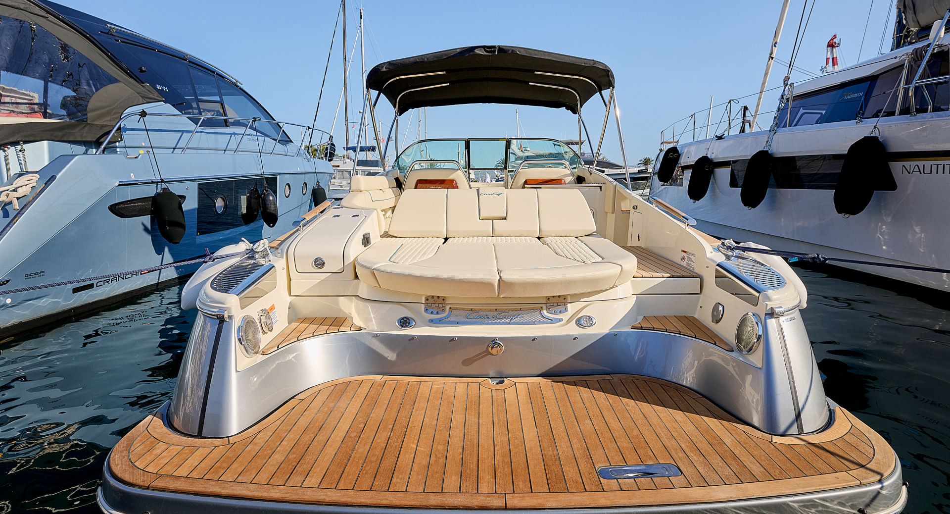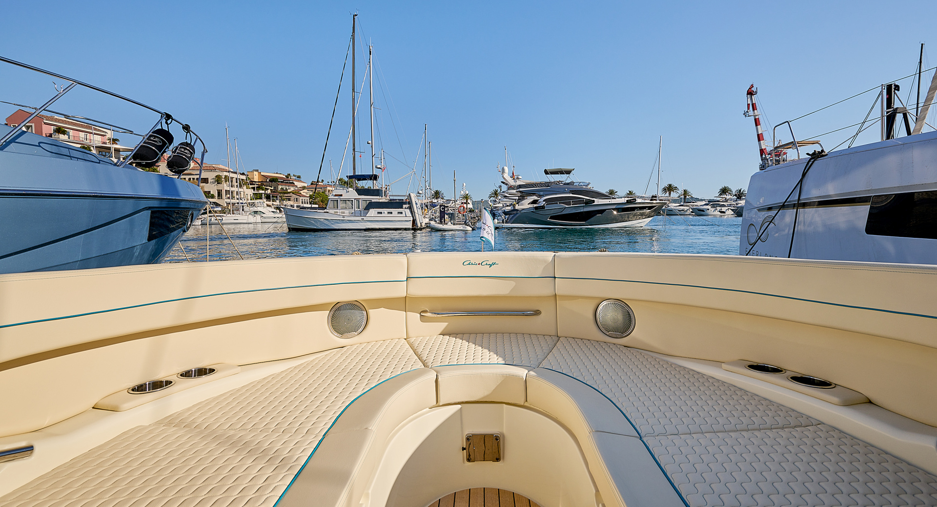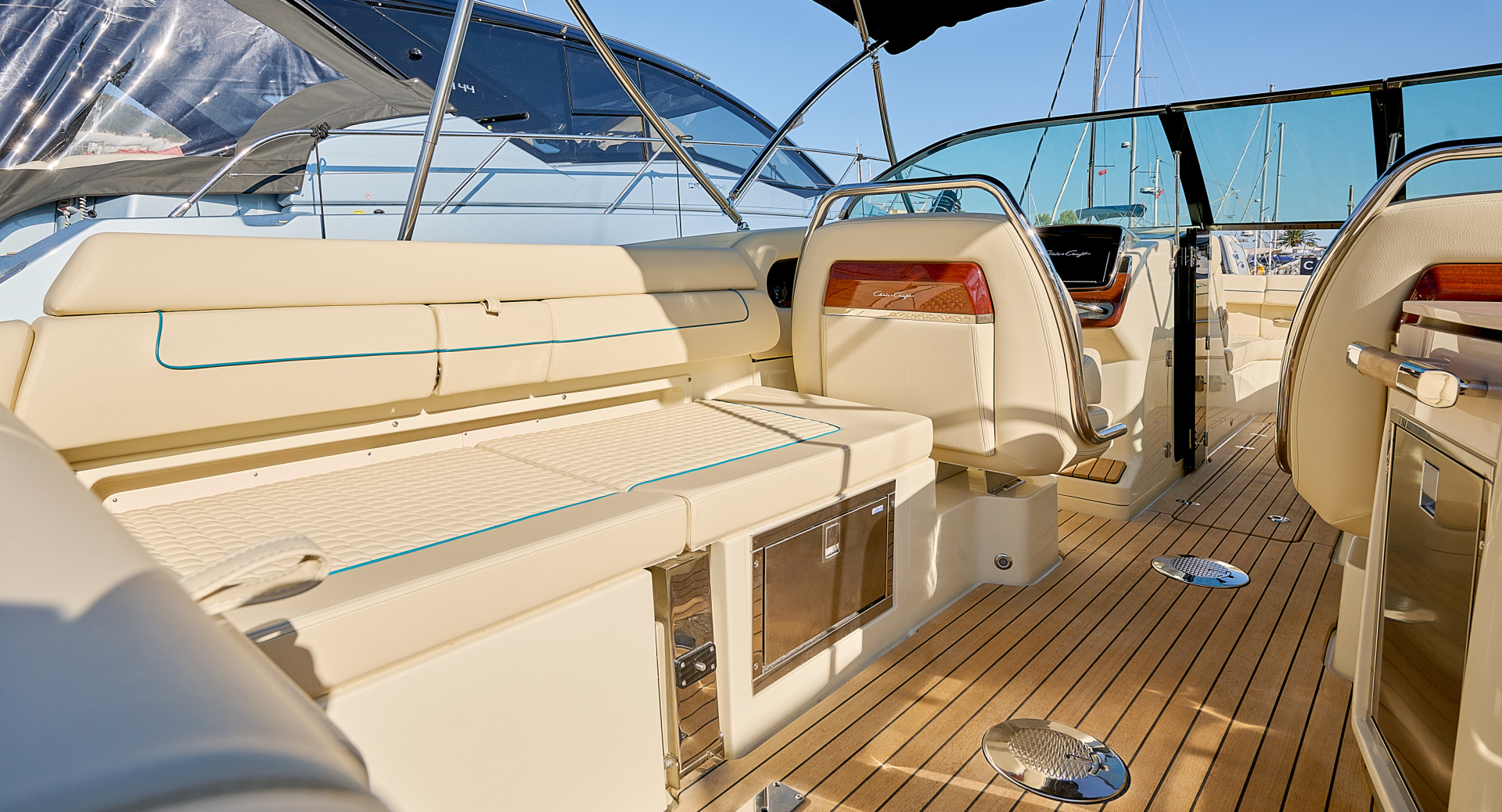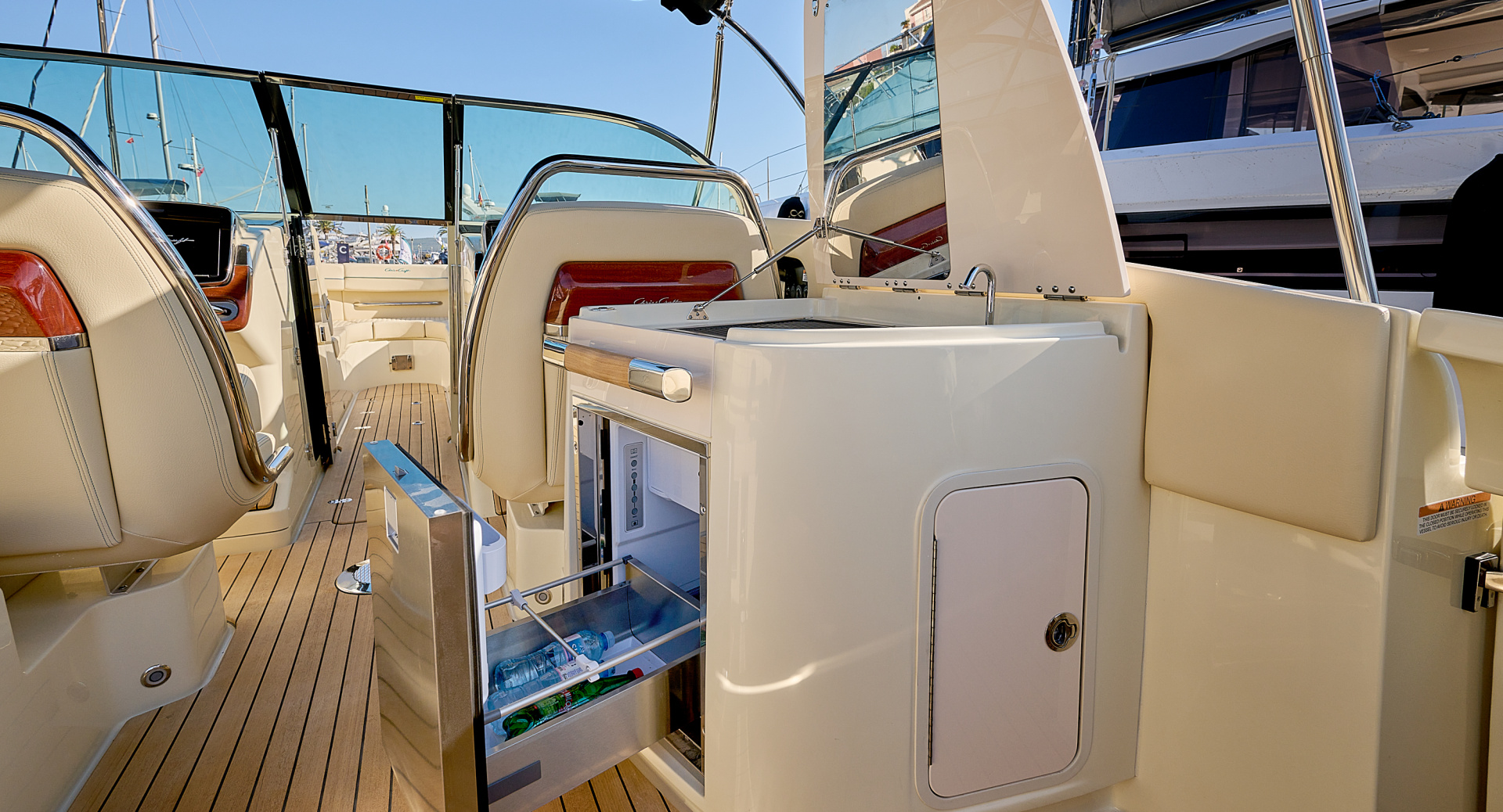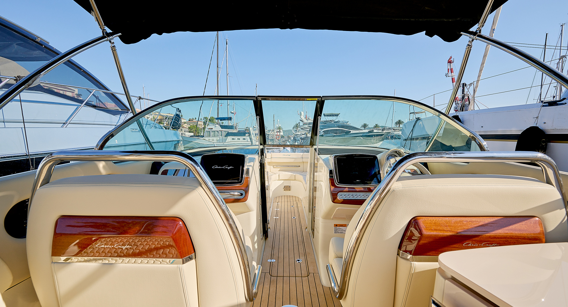Боурайдер Launch 31GT создан с неизменным вниманием к деталям и мастерством, сделавшими бренд Chris Craft легендарным в мире катеров, и предлагает идеальное сочетание стиля, производительности и комфорта. Изящные обводы, обилие деталей из тика и фурнитура из нержавеющей стали создают неустаревающий облик джентльменского катера. Корпус с глубоким V-образным профилем легко рассекает волны, обеспечивая плавный и стабильный ход. Благодаря двигателям Mercury Verado мощностью 400 л.с. каждый, Launch 31GT с легкостью составит на воде конкуренцию любым спортивным лодкам своего класса. Просторный и роскошный кокпит снабжен удобными сиденьями и практичной дверцей в борту. На катере есть туалет с раковиной для рук, холодильник и электрогриль. Эргономичный пост управления оснащен большой сенсорной панелью.