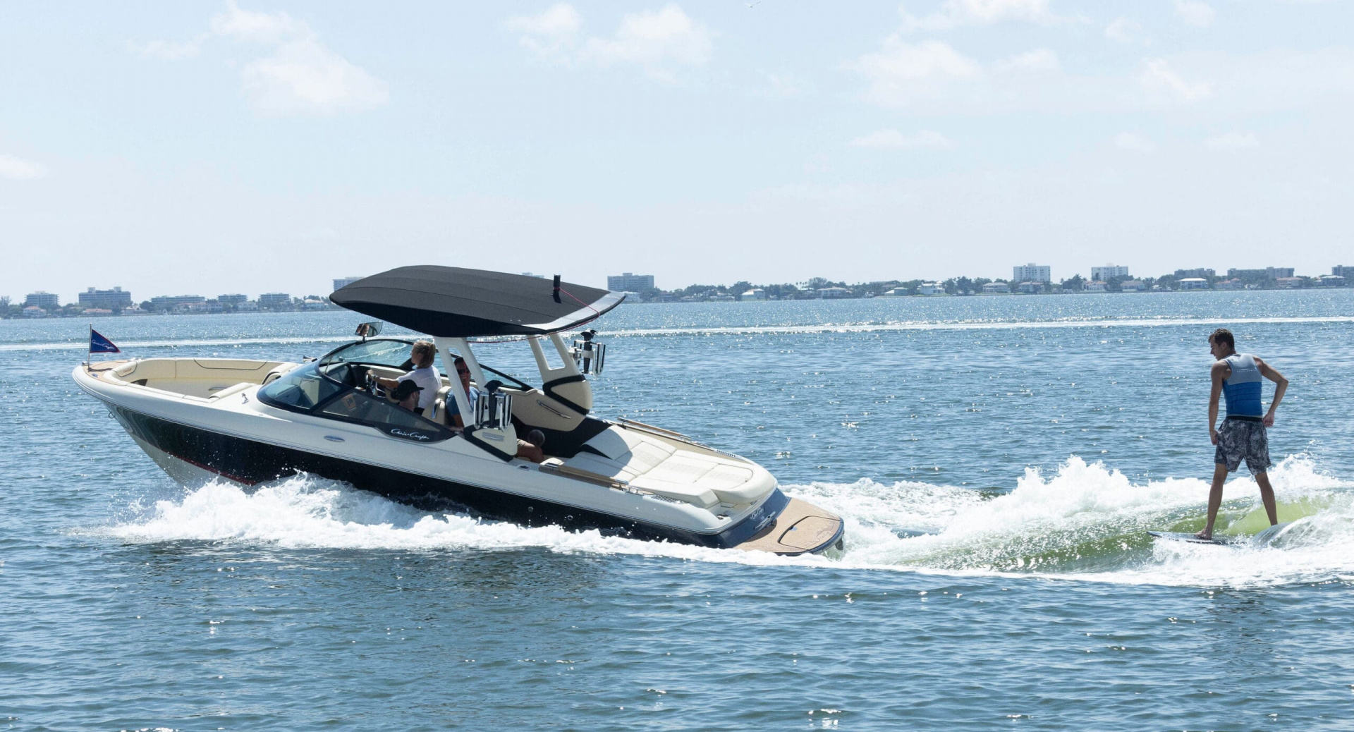 SPORTSTER 25 SURF — это современный катер, сочетающий в себе элегантность дизайна, функциональность и высокие ходовые качества. Модель создана для тех, кто ценит активный отдых на воде и хочет получить максимум удовольствия от катания, вейкбординга или сёрфинга.